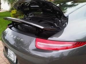 Я начал с модернизации штатного спойлера. Мне показалось, что прижимная сила, создаваемая им недостаточна для хорошего сцепления задних колёс с дорогой. Я думал создать активный спойлер, который бы помогал мне при экстренно торможении. Идею я взял у Гитлер Мобиля 991 GT3. Смотрите фотки, что у меня вышло!