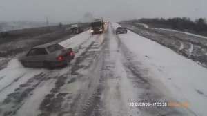 По всей видимости это водитель большегруза который так и не смог подняться в этот небольшой подъем...... Блин жутко конечно, а в суд на дорожников подать необходимо на дороге укатанная корка льда, она должна быть посыпана!