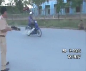 Вьетнамская полиция проводит тестирование спец.средств для борьбы с байкерами. По результатам тестирования будет принято решение о запуске устройства в массовое производство.
