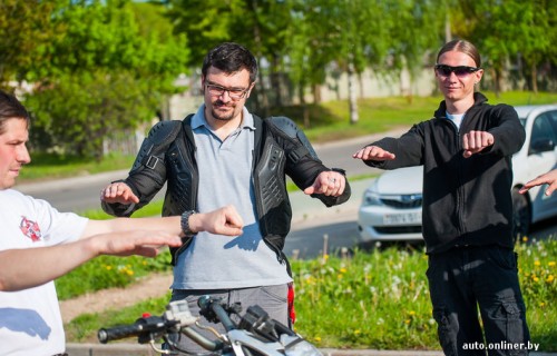 Новички, не гонитесь за большой кубатурой! «У меня есть Triumph Rocket III Roadster, — начал с небольшого предисловия и очевидного совета организатор движения Motohelp Дмитрий Бельский. — Это 500-килограммовый байк с двигателем объемом 2,3 литра. Выкручиваешь ручку на полмиллиметра — едет, на миллиметр — летит, больше — и он превращается в злую ракету. Поставить этот тяжеленный мотоцикл на заднееколесо — проще простого. Таким байком может управлять только профессионал, даже я не всегда с ним „дружу“. Вот для новичков в такую злую ракету превращается литровый спортбайк.