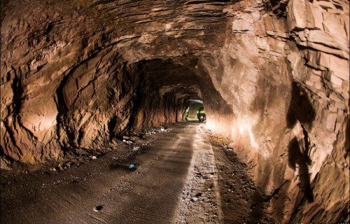 Прорубили, и будет! С потолка течет, под колесами жижа, освещение только в начале и в конце тоннеля….