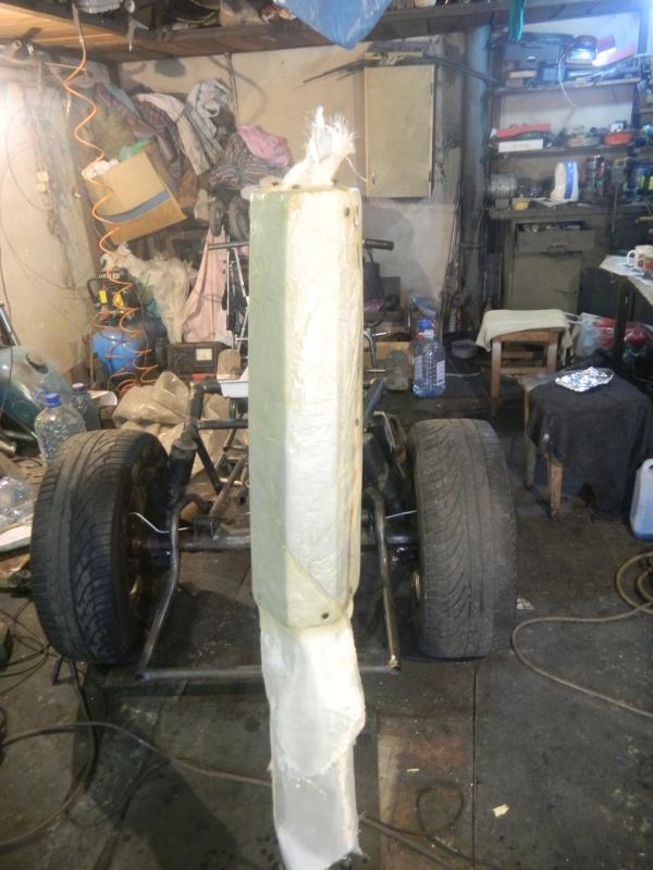 Пластик выхлопа изготовлен по описанной выше схеме, а начинка взята (и основательно доработана) от… мотороллера Муравей.