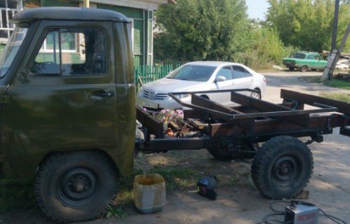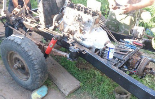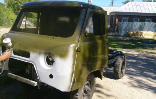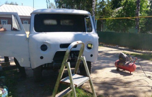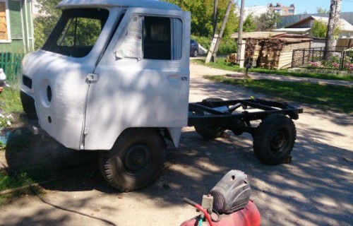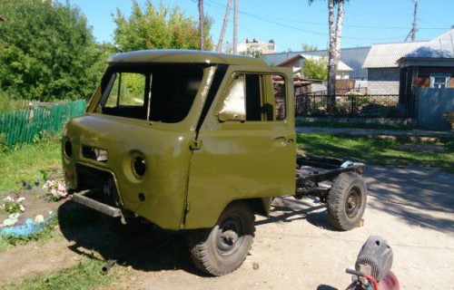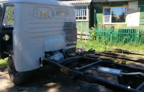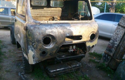 После увиденного я, честно говоря, был в шоке, но тесть с отцом настояли, сказали все вместе починим. Сторговались до 15 тыс. и поехали домой (Уаз стоял 3 года без движения, но завелся с первого раза, и доехал 3 км. своим ходом). На учет его в таком виде не поставили, сказали делать а потом приезжать (машина с доками). Денег на ремонт особо не было да и помещения тоже, делали все на улице. На ремонт ушло 50 тыс. руб. и 3 летних месяца работы. Делали втроем по выходным.