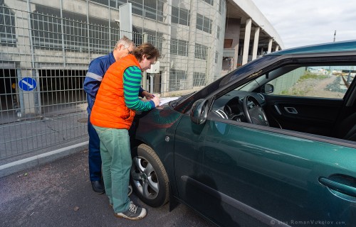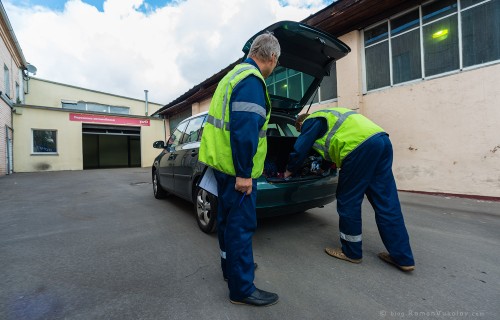 Так как при прохождении границы снимать ничего не разрешается, расскажу вам как это происходит. Досмотр автомобиля российскими пограничниками происходит в Выборге. Хмурые пограничники зачем-то фотографируют ваш автомобиль, снаружи и внутри, открывают всё что открывается и заглядывают всюду, куда только заглядывается, при этом требуется ваше личное присутствие. Чем им могло бы помешать моё барахло в багажнике, при том, что оно всё равно едет со мной в купе, я, если честно, так и не понял. Так же они как обычно с подозрительным взглядом заглянут в купе для постановки штампа в паспорт, и традиционными вопросами в стиле «оружие-наркотики-ценности».