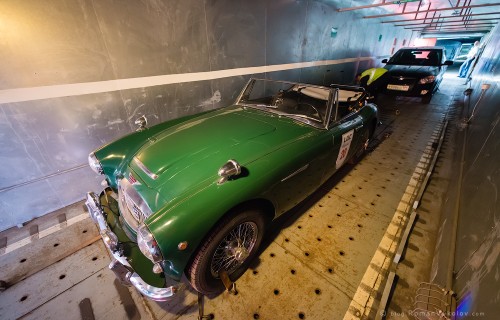 В одном вагоне помещается до 4х автомобилей. Но сегодня вместе со мной едет только один — вот этот симапатичный олдтаймер )).