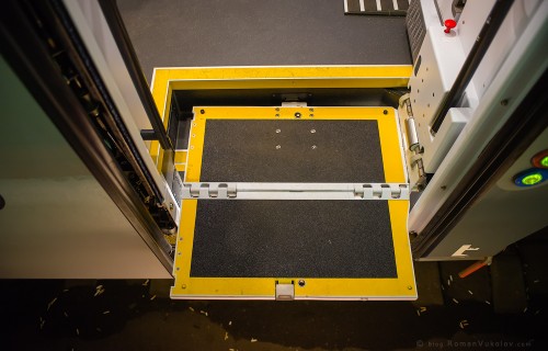 Так как вагон более узкий, а в Европе большинство платформ низкие, что бы соответствовать стандарту российских платформ у него есть откидная ступенька.