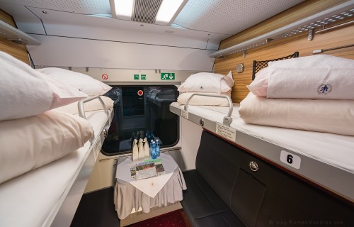 В старых вагонах класса RIC были ужасно тесные трёхместные купе, где все полки располагались одна над другой. Но тут привычное нам 4х местное купе. Эти купе, как видите, ещё и довольно светлые и в них всё продуманно.
