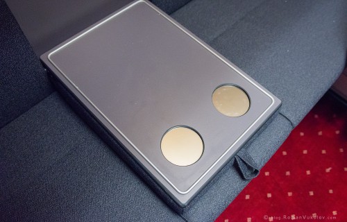 На нижней полке, хотя, её так уже не поворачивается язык называть, в сидячем положении есть откидной столик. Теперь если все 4 пассажира одновременно желают перекусить, не обязательно ютиться у маленького столика. И как до этого раньше не могли додуматься?