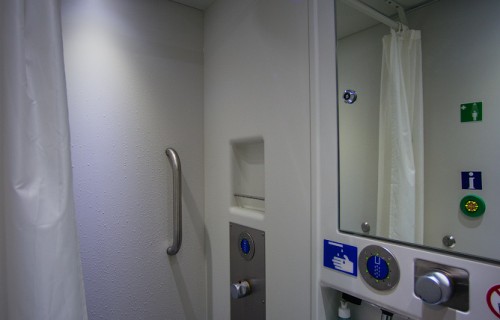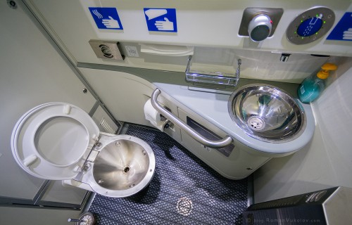 Пошёл в туалет. Он вакуумный, но этим нас уже не удивишь. А вот тем, что в наличии жидкое мыло, везде сенсоры и даже есть бумажные полотенца и одноразовые подстилки на сидение — вот это меня действительно порадовало.