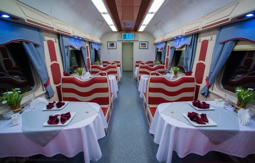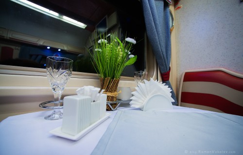 Пошёл посмотреть, чем порадует вагон-ресторан. Межвагонные пространства теперь светлые, и больше не оглушают грохотом.