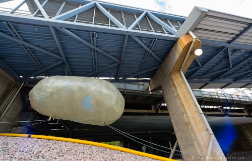 Под эстакадой у подземного перехода висит какой-то светящийся изнутри кокон. Никакой информации о чём эта инсталляция я не нашёл. Может кто в курсе?