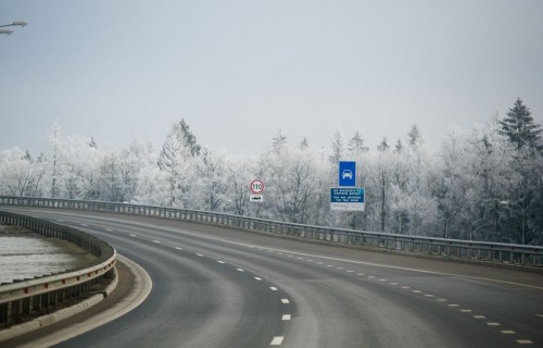 Ограничение на трассе — 110 км в час. На платной дороге иногда прячутся инспекторы с радарами. А вот камер, которые выписывают штрафы, нет. Этим пользуются лихачи, приезжающие ночью погонять на широкой хорошей дороге.