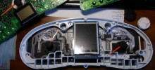 дальше вскрывается комбинация приборов, и там с охуением обнаруживается микроконтроллер от TOSHIBA, на который нету информации вообще нигде, даже в этих ваших интернетах… Кстати, может кто может нарыть на него даташит?