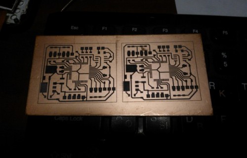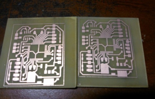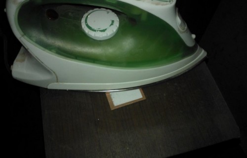 после этого берётся утюг, чтобы приутюжить тонер к меди, тонер прикроет медь в нужных местах, а остальное — сожрёт хлорное железо