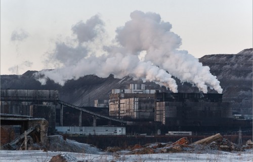 Суровейший индастриал. Огромный черный комбинат с дымящимися трубами на горизонте; непонятные бетонные сооружения, целые разобранные цеха и пустые дома с зияющими глазницами оконных проемов. Внутри — остатки жизни: чья-то обувь, обои на стенах. На полу лужицы черного льда. Но это не Припять. Никто не бежал отсюда, бросая нажитое. Просто когда разработки угля только начинались, еще не было здесь ни рукотворной горы, ни угольной пыли, и даже роза ветров была другой. А со временем жители просто выстроили себе новый город на горе, полностью оставив долину под промышленные нужды. Сейчас здесь разве что автомобильная площадка для обучения вождению.
