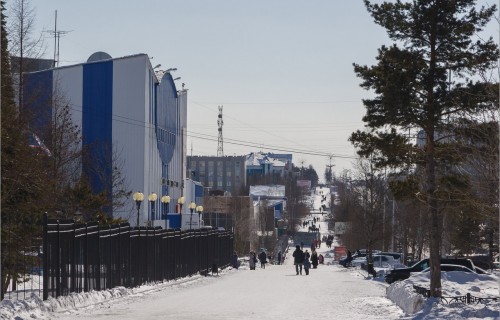 В современном Нерюнгри, том, что на горе, на удивление чисто и бело: на горизонте видны снежные сопки, а на горнолыжную трассу сюда регулярно приезжает на тренировки даже сборная России по биатлону. Кстати, в марте, когда в остальной России наступает весна, и люди ждут первой зеленой травки, здесь наступает идеальное время для занятий зимними видами спорта: якутские морозы уже позади, на улице ясно, а снегу лежать почти до мая. Действительно, усидеть дома сложно 🙂 .