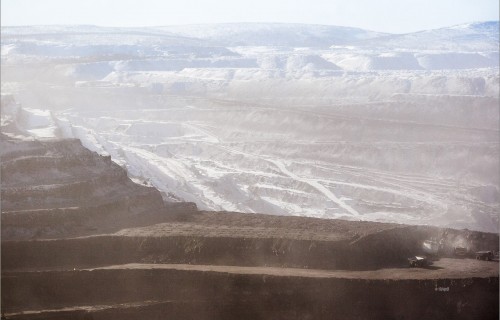 На следующий день уже другие люди — глава семейства, в котором я остановился, сотоварищи свозили меня на угольный разрез. Совершенно закрытая территория. КПП с осмотром салона транспортного средства при въезде и выезде. Выделили даже ПАЗик и сопровождающих, так, что вдруг начинаешь чувствовать всю ответственность своей задачи — заснять, как «стране дают угля». Масштабы действительно потрясают. Пыли столько, что снег абсолютно черный, а о людях, копающихся внизу трехсотметрового карьера невольно думаешь, что они совершают подвиг.