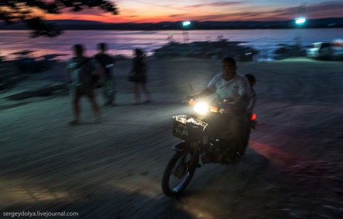 На мотоциклах гоняют весьма безрассудно. По два, а то и по три человека:
