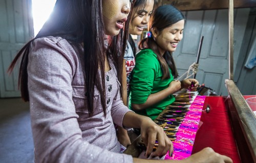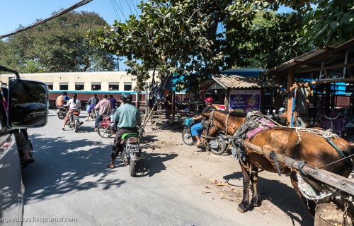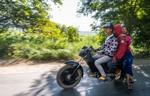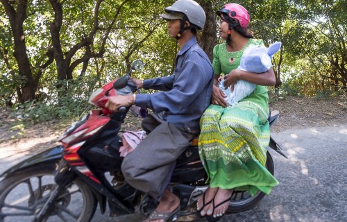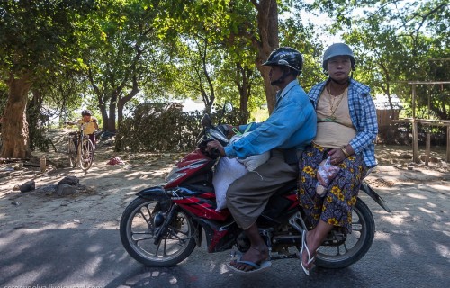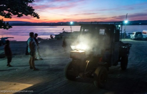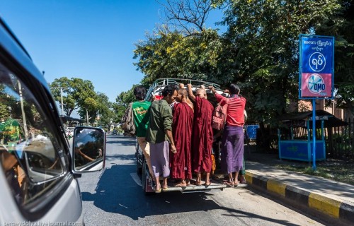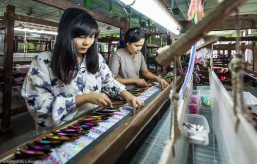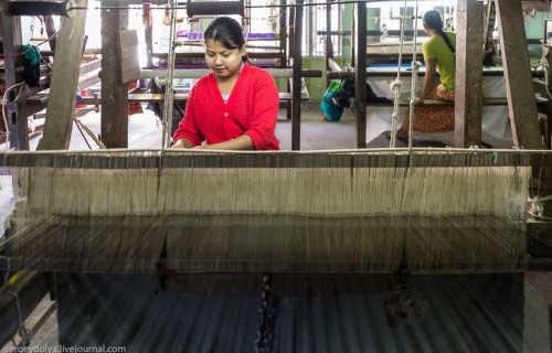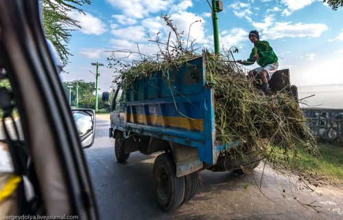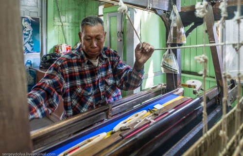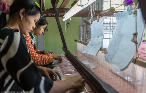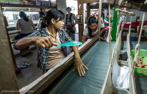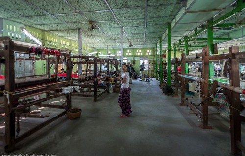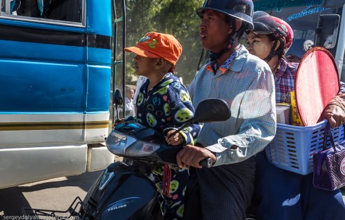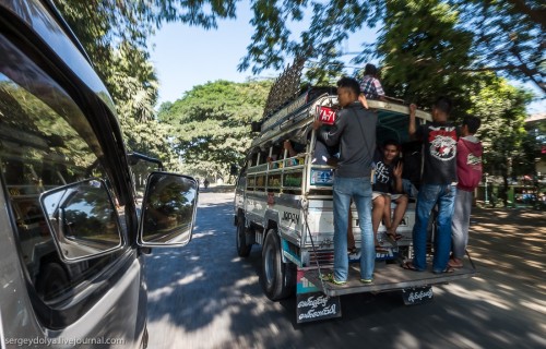 Особенно это было заметно на примере ткацкой фабрики, которую мы посещали и в прошлый раз. Если раньше в цеху было всего пара работающих станков, а магазин ютился в одной комнатке, то сейчас — большая мастерская с огромным магазином. Ее фотографии под катом, но прежде хочу показать несколько кадров на тему передвижения по Бирме. Ездили мы часто, время в дороге проводили достаточно, и чтобы не скучать, я иногда снимал из окна местные средства передвижения…