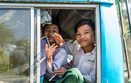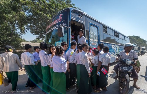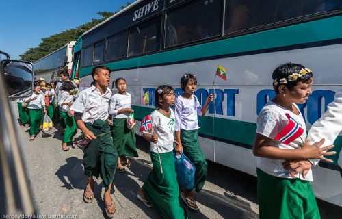 Во время нашего визита в Мандалай прибыл король Норвегии. Местную детвору свозили автобусами для официальных мероприятий: