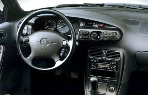 Стоит заметить, что в середине 80-х тема футуристичных интерьеров занимала лучшие дизайнерские умы индустрии. Популярность новых технологий и, прежде всего, ЖК-панелей, грозила революцией в искусстве оформления салона. Концепт Mazda MX-03 – прекрасный пример идей и решений той поры. Штурвал вместо рулевого колеса, джойстик вместо рычага селектора трансмиссии, ЖК-приборная панель вместо традиционных циферблатов, а еще проекция данных на лобовое стекло и сенсорные переключатели.