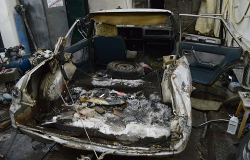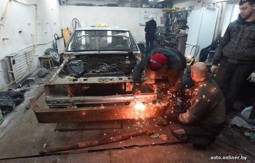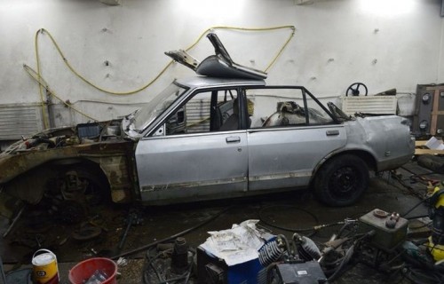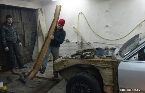 Машину доставили в гараж, сняли крылья, капот, бамперы, попробовали завести двигатель. Как ни странно, мотор довольно бодро ответил на поворот ключа в замке зажигания. Как в лучших боевиках начала 90-х, роль ключа выполнила отвертка с прямым шлицевым наконечником. Коробка переключения передач также оказалась рабочей. Мастеру пришла в голову идея вложить в автомобиль некий концепт. «Пару лет назад я готовил „Волгу“ с расцветкой ГАИ СССР, поставил герб, мигалку, — говорит Ростислав, примеряясь к Ford Granada. По его словам, он имеет хороший опыт восстановления машин. Но иногда над мастером берет верх желание обратного процесса — разрушения. Тогда он готовит нового бойца для автобоев. — На следующий год я придал „корчу“ раскраску почтовой службы. На этот раз сделаем бешеное такси. Плафон уже найден и установлен на крышу». Правда, уже через пару часов крыша укоротилась ровно наполовину, были спилены задние стойки, элементы багажника. В итоге с помощью болгарки и сварки из седана получился пикап. На жесткость кузова это повлиять не должно, зато внешний вид потерял былую невзрачность. На данном этапе добавили разве что колеса с подвеской.