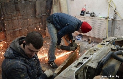 Понятно, что красота в такой доработке отнюдь не важна, а основным критерием становятся прочность и убойность. Тем не менее процесс и такого «тюнинга» довольно интересен. Перед мастером стояла нелегкая задача — за четыре дня из разбитого ржавого «корыта» сделать машину для убийства. Onliner.by проследил историю восстановления одного боевого Ford Granada, а заодно и опробовал его в действии.