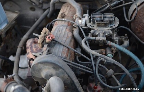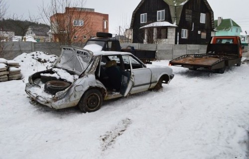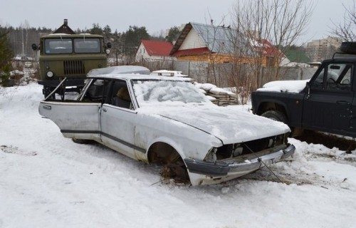 В качестве донора выбрали модель с 30-летней историей и двухлитровым 90-сильным агрегатом. Машина, откровенно говоря, была практически металлоломом. По легенде, в свое время ее нашли в витебских болотах, она ушла на пару метров в торф. Но автомобилю была уготована не скучная погибель в топи, а геройская смерть в бою — он будет участвовать в соревнованиях «Завiруха-2015» в классе Unlim. Критерии для машины были более чем демократичные: должна быть на ходу, остальное неважно. В нашем случае в понятие «неважно» входил внушительный набор неисправностей: отсутствие колес, подвески, оптики, смятая в аварии задняя часть кузова (в том числе двери), гнилые пороги и арки, ржавчина в других местах и «паутинка» на лобовом стекле. Зато фаркоп цел. В общем, ничего критичного. Так выглядел «свежий» Ford:
