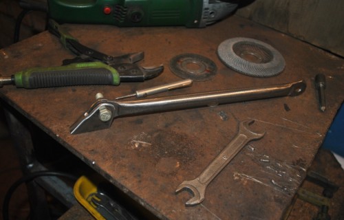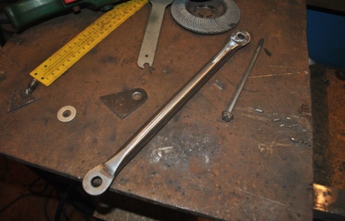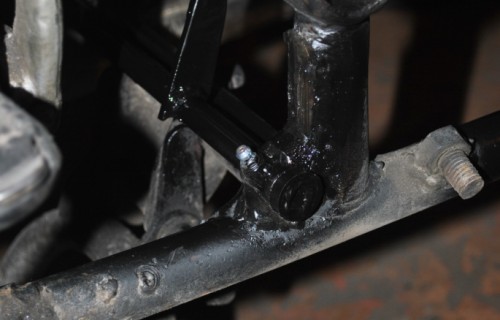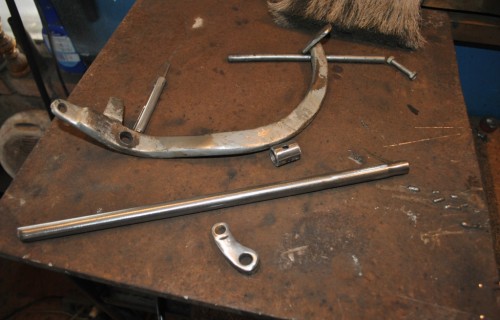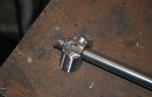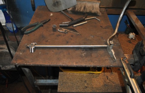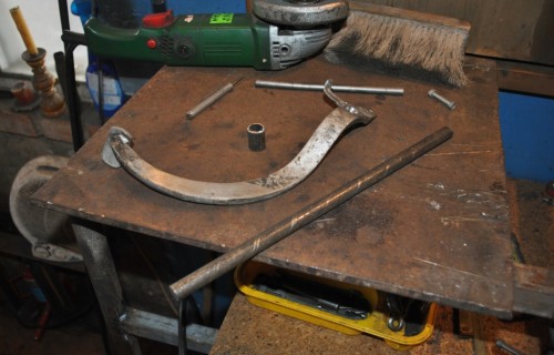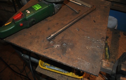 Дальше – веселее. Решено было изготовить ось вращения для передачи усилия от тормозной лапки на тягу тормоза, и она будет проходить через всю раму горизонтально.