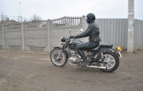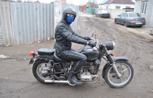 А это уже сегодня утром (26.02.15). Миша испытывает мотоцикл с ВЕЛИКИМ! ШИРОКИМ! Колесом)))