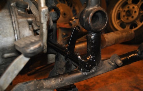 Так как на Вулкане тормозной барабан и рычаг находились справа, при установке на МТ, они оказались слева. Прикольно…Реактивная тяга будет идти сверху маятника и работать на сжатие…