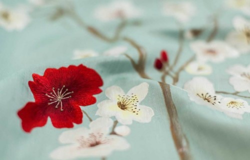 2. Все цветы на шелковой ткани были вышиты вручную.