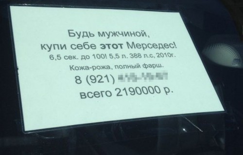 Правильная реклама – это прямой путь к успеху в любом деле. Понимая это, один житель северной столицы составил креативное объявление по продаже своего автомобиля Mercedes-Benz GL500.