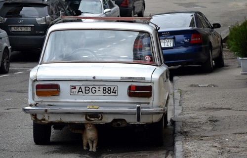Ещё одна грузинская особенность – и в Тбилиси, и в Кутаиси нет платных парковкок. Ставь машину где и когда хочешь! За мнимым порядком следят местные добровольцы-босяки, готовые присмотреть за любым автомобилем за небольшую мзду.