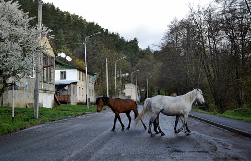 Чаще всего они никак не реагируют на автомобили, без всякого страха и нервов с чисто грузинским спокойствием продолжая следовать своему пути.