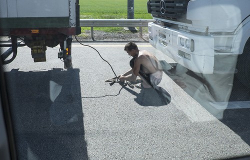 Как я уже сказал, жесть началась уже на первом платном участке, ограничение скорости в такой ситуации выглядит банальным издевательством. Все эти люди стоят, чтобы оплатить свое стояние. Бред, конечно, но по факту получается так.