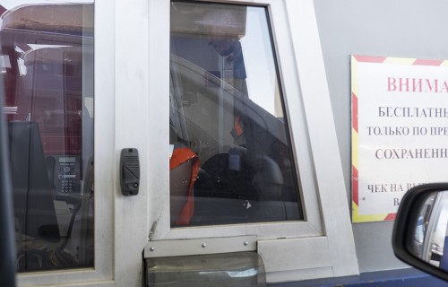 Для удобства всех, у кого есть транспондеры (ключ-абонемент, поднимающий шлагбаум), есть специальная дорожка, куда пускают только по ним.