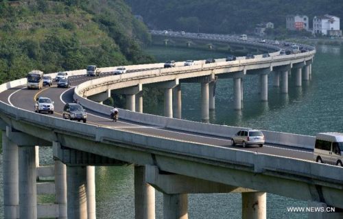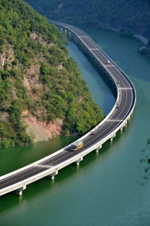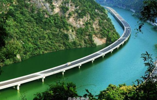 Потрясающий новый автомобильный маршрут открыт в провинции Хубэй в Центральном Китае. Водители буквально едут по воде, потому, что автомагистраль длиною 10 километров построена на середине реки. Впечатляющая дорога соединяет округ Хингшан в провинции Хубэй с высокоскоростным маршрутом G42, который соединяет Шанхай на востоке Китая с Чэнду на юго-западе Китая.