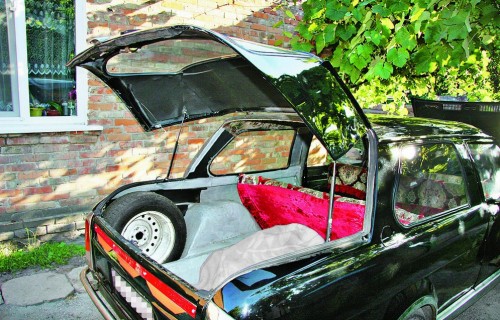 И его детище снова стало на прикол, в этот раз – для модернизации кузова. Его расширили и удлинили, увеличив колесную базу и задний свес. Пришлось даже за счет проставок под диски расширить колею, чтобы увязать новую ширину полезного пространства кузова и параметры шасси. Салон вышел настолько вместительным, что на переднем сиденье сегодня помещается трое человек (с водителем), а на заднем – все четверо. Еще нагляднее: вдоль заднего дивана в полный рост ложится взрослый мужчина средней комплекции.