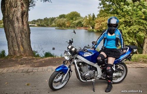 Мы решили не гадать, а напрямую адресовать эти вопросы мотоциклистке из Минска Вере, известной в своем сообществе под прозвищем Кексик. «Байкеры однажды сказали, мол, в девушке должна быть изюминка, а я — целый кексик, так и пошло», — объясняет она. По словам Веры, ей хватило всего одной поездки на заднем сиденье «спорта», чтобы почувствовать почти патологическую зависимость от двухколесной машины.