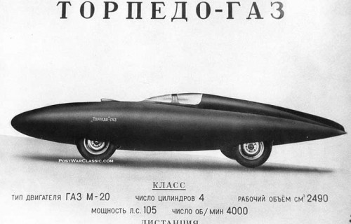 В 1951 году конструктором ГАЗа А.А. Смолиным был сконструирован спортивный автомобиль ГАЗ-СГ2 «Торпедо-ГАЗ». Каркас был собран из дюрали и обшит алюминиевым профилем. Силовой агрегат был позаимствован у Победы, но объем двигателя был увеличен до 2487 см. куб., был установлен нагнетатель «Рутс», мощность модернизированного мотора составляла — 105 л.с. при 4000 об./мин. В трансмиссии использовалась трехскоростная коробка передач, лишенная синхронизаторов и карданный вал с промежуточной опорой, состоящий из двух частей. Максимальная скорость ГАЗ-СГ2 составляла 191 км/ч