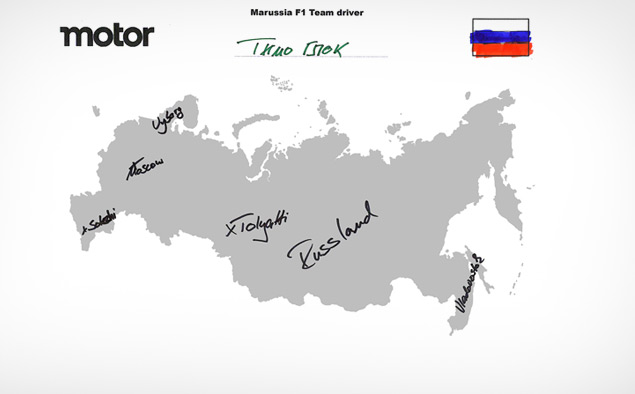В команде Marussia в Формуле-1 пока нет российских пилотов. В нынешнем сезоне за коллектив, выступающий по российской лицензии, гоняются немец Тимо Глок и француз Шарль Пик. «Мотор» решил выяснить, как много они знают о нашей стране.