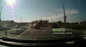 У дальнобоя отказали тормоза. Посмотрите внимательно. Он как мог объезжал стоящие на красный машины. Увел неуправляемую машину с дороги спас жизни в том числе этих мужиков (которые матерятся). Столб вошел ему прямо в кабину...