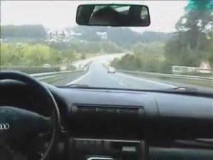 Скорость 150 км/ч. Причина заноса — масло на дороге. Авто: Audi A4 1.9 TDI. Реакция — супер!
