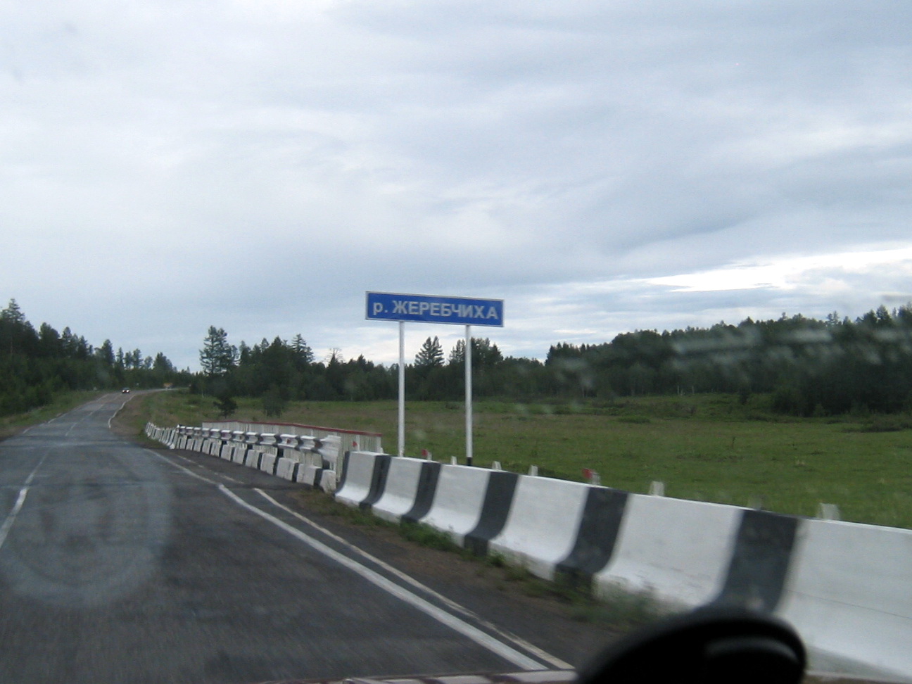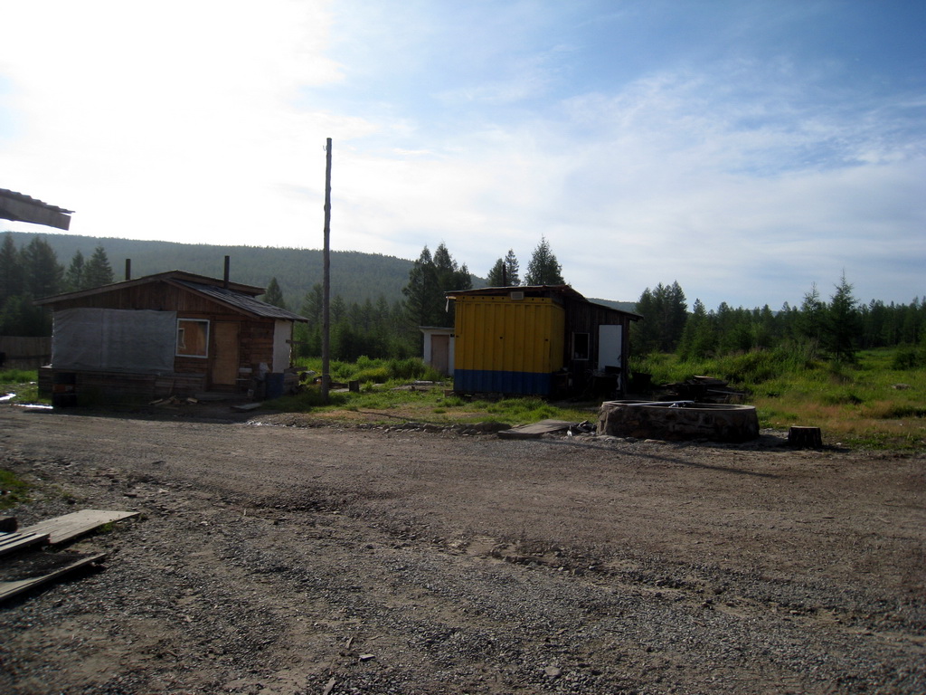 Проснулись в 8 утра. Как раз открылась кафешка, поэтому спокойно попили кофе, поблагодарили хозяев кафе за предоставленный кров и двинулись дальше. Было очень приятно встретить душевных людей. До Тынды добрались без приключений. На заправке супруга уивдала симпатичного котика: Заправились и полетели дальше. Решили заглянуть на ж.д. вокзал г. Тында – вроде как он построен в виде утки.. Заглянули – человек с богатым воображением – действительно разглядит в нем утку. Ну да ладно. Оставили негостеприимную Тынду и покатили к границе с Якутией. Перед въездом в Якутию – есть еще одно кафе, где решили поесть блинчиков (в Джелкатулаке было рано, и их не успели приготовить). Подъехали к кафе вышли – я заглушил двигатель, а на сигнализацию поставить не могу. Что такое? Вставляю – ключ – поворачиваю – машина не подает признаков жизни вообще. Только что же работала Открываю капот – осматриваю все - и вижу – слетела минусовая свинцовая клемма левого аккумулятора, упала вниз. Начал доставать – искр куча… но достал, надел на акккум, подбил молотком подкрутил, вроде держится. Попили кофе с блинчиками, и покатили дальше. Подъезжаем к границе – и мать моя женщина – а там – все чисто, отмыто, красота: Переезжаем границу, и мама дорогая – дорога сделана- нет ужасных ухабов и вообще вроде все цивильно – можно ехать до 70 км в час –не напрягаясь. Но не тут то было – вылезла проблема перегрева двигателя. В этой части Якутии много подъемов и спусков, поэтому когда ползли на подъем – сразу ползла и стрелка температуры. Включали обе печки, температура рост замедляла – но все равно не настолько. Особенно неприятно было когда приходилось обгонять большегрузов на подъемах, он едет 30 в подъем и я его обгоняю на 35 медленно медленно.. Прошли Нагорный, там после него дорога идет по вершинам невысоких сопок. Я засмотрелся в боковое окно на пейзажи – и чудом не столкнулся со встречным грузовиком на бешенной скорости вылетевшим из за поворота. Он меня не ожидал увидеть, а я наполовину был на его полосе. Разминулись, еще раз повторюсь – чудом %). Успокоились и поехали дальше. Проехали указатель – до Якутска 870. Казалось бы, не так и далеко но все равно пилить долго. Опять пошли подъемы – и снова наши колымские пейзажи – даже снег еще лежит. %) Ну а такие заборы, известны всем – кто ездит по нашей области %) В Беркаките были остановлены сотрудником ДПС второй раз. Он строго поинтересовался почему я нарушаю правила – закрывая номер региона (он у меня немного прячется под кенгурятником, видать потому и останавливали редко – думали я местный)… очень удивился, что я не везу оружия в такую дальнюю дорогу, осмотрел снутри салон, и отпустил. Трассу в районе Нерюнгри (там где гламурный асфальт) – подлатали хорошо – положили на розовый обычный черный асфальт. Поэтому прошли тот район тоже быстро. После него опять грунтовка – и смотри-ка ты опять таки грейдерованная. На подъезде к Большому Нимныру, нам все началаи моргать фарами. Первый раз за все путешествие, я аж испугался – думал – может у меня чего отвалилось – вышел осмотрел машину и поехал дальше. Значит думаю, ДПС. Так и оказалось – два молодых сотрудника – почему то очень веселых, чуть ли не ржащих об чем то своем как лошади – остановили попросили документы – узнали куда и откуда еду, отдали документы тут же без осмотров и дока