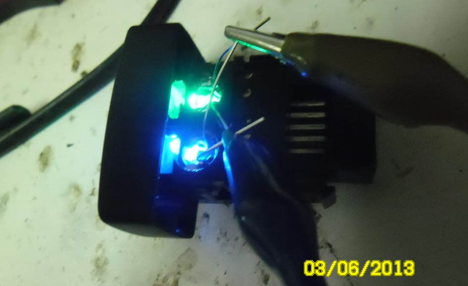 VIN*49 блин вот только позавчера удалил фотки внутрянки=)) паял лапки одним проводом к + а другим цельным проводом к лапкам - , паралельно. на подводку питания установил 3шт советских МЛТ тоже в паралель, напряжение упало до 9.5вольт. диоды 12вольт. скоро поворотки делать буду но диоды теперь на 3вольт. плюс к ним хочу микросхемку установить что б поворотки получились переливающиеся а не просто мигающими