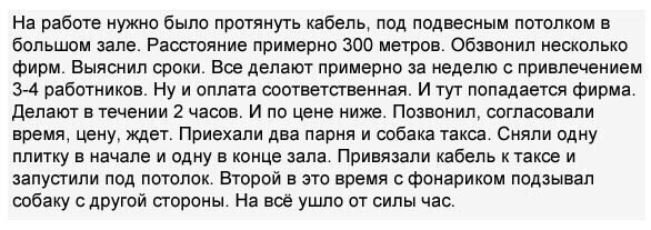 Утро, ну зачем ты начинаешь, нормально же спали... У меня нет ни твиттера, ни инстаграмма. Я просто прогуливаюсь по улице и говорю незнакомым людям, что я ем и пью, и как у меня дела дома и на работе. Уже три подписчика: врач и двое полицейских, следящих за мной... - Я в спортзал. - Постой. Ты не хочешь выпить водки? - Нет. - И не хочешь обсудить хохлов? - Нет. - И давно ты шпионишь на американцев? - Прикинь, Саня, мой дед был греком. - Не понял, ты что, штуку зеленых отдавать не будешь? Помните, в 95-м появился анекдот о том, как Яков Самуилович уезжал в Штаты. Его спрашивают, ЗАЧЕМ?!! У Вас тут всё есть! и тут ваш бизнес?? А он говорит, что из-за гомосексуализма. А ему, ЯковМоисеевич, а Вы к этому какое отношение? Он пояснил, 10 лет назад за это сажали, пять лет назад это перестали замечать, сейчас(в 95-м) это обычное дело, а через пять лет это будет обязательно!!! и уехал в США. Так вот к чему это я, Яков Моисеевич, от судьбы не уйдёшь!! - А что это у вас морда такая кислая, будто вы пол-лимона съели?! - Жить захочешь и бриллианты сожрешь! - ответил прокурор, дожевывая купюры... Если видишь, что твой начальник стоит в аптеке перед витриной с гандонами, не теряйся! Протиснись между ним и витриной, загадай желание! - Когда ты найдешь работу?! - Если работа действительно хорошая, то она сама меня найдет! Многие знают, что собака Павлова при виде лампочки пускала слюни, но мало кто знает, что она могла вытворять при виде паяльника... |