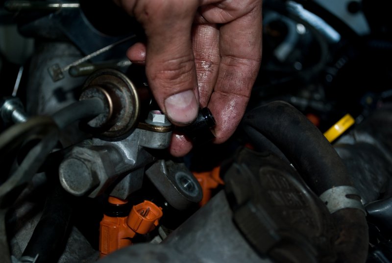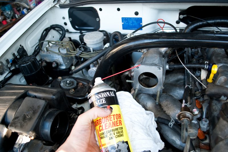 Итак, имеем Эскудо ТL52W, двигатель J20A. Машина тупая, педаль газа тяжелая, заводится - когда как. Для начала готовим необходимый инвентарь : ключи, головки (длинные, короткие)(8,10,12), удленители головок, трещетка, отвертки, пассатижи, ветошь,WD-40,Карбклинер, острый нож, герметик(черный или красный),небольшие ёмкости,кусок 15/15 прокладочного материала, например ПАРОНИТА, чистые пакеты - штук 5. Для чистки форсунок нам понадобятся провода, батарея на 4,5 вольт, кембрики, кнопка по типу замыкателя импульсного, трубка резиновая эластичная, зажимы как на топливных фильтрах. Как это всё собрать: делаем линию с импульсным выключателем (нажал -ток, отпустил - нет тока) - лучше делать подлиннее, для того что бы можно было нажимать ногой, на один конец закрепляем батарею, на другом - вставляем кембреки - диаметр-3 или 4 мм, можно изготовить из изоляции провода подходящего диаметра - суть та же. У форсунки два контакта длинной 10 мм, шириной 0,5 мм, высотой 3 мм. Подключая форсунку, разницы не будет плюс или минус. Снимаем распылитель на карбклинере - он диаметром примерно 10 мм. Смотрим на распылитель сверху, видим два отверстия, берем зажигалку и запаиваем их,берем нож и делаем срез от выпускного отверстия кверху - суть действий в следующем: необходимо сделать распыление не в бок а вверх. Надеваем распылитель на карбклинер, зажимаем зажимом проверям работу - бьет вверх? - хорошо! снизу не сифонит? - хорошо! Проверяем цепь - там где должна быть форсунка подключаем лампочку, нажимаем на кнопочку с частотой 3-5 раз/сек. Светит? хорошо! Импульсно? Хорошо! Вообще всю работу лучше делать в первой половине буднего дня - так если потерял какой болт, можно было в магазин сгонять. Отсоединяем клемму аккумулятора. Открываем лючок бензобака, снимаем крышку. Всё это для избавления от избытка давления в топл.магистрали. Снимаем рез.трубу воздуховода, отсоединяем все фишки от блока дрос.заслонки (их не перепутаете, они все разные). Пробрызгиваем болты WD,а конкретно,2 болта и 2 гайки крепежа БДЗ (то ли на 10, то ли на 12), 2 болтика(на 8+крест под отвертку) клапана холостого хода, трубки охл.жидкости и карт.газов. Снимаем тросики. Запомните положение гаек, чтобы потом не мучатся. Снимаем трубки ОЖ и воздушные трубки. Сразу подготовьте заглушки, можно болты подходящего диаметра. Откручиваем корпус дроссельной заслонки. Если прокладка осталась целой - хорошо, если нет - скалупываем с поверхностей все остатки. Чистим дроссель карбклинером: дроссельная заслонка и все каналы. Смотрим во впускной коллектор, в него заходит трубка от клапана ЕЖР, пробрызгиваем её - хорошо пробрызгиваем, т.к. до клапана ЕЖР добраться проблематично (но в скором времени и туда залезу), можно пока прочистить трубку. Скручиваем клапан холостого хода (скручивать лучше головой на 8). Сразу обратите внимание на кольцо-прокладку, не потеряйте её (прокладку обработатьWD-40 и убрать в чистый пакет). Аккуратно раскручиваем КХХ. Не потерять резиновое кольцо(красное) и пружинку (кольцо-прокладку обработатьWD-40 и убрать в чистый пакет ). Чистим КХХ, крутим – надо, чтобы нигде не клинило, сушим, брызгаем WD-40 тем самым смазываем вращающиеся элементы, протираем, пружинку на место, кольцо красное на место, собираем, затягиваем винты. От того что вы вращали клапан ничего страшного не произойдет - при включении зажигания он сам встанет как ему надо - вы