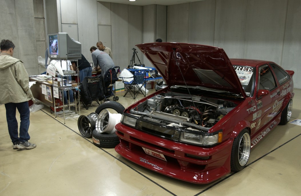 Перевод: Drom.ru Автор: Jonathan Wong Фотограф: Jonathan Wong при перепечатке ссылка на источники текста и перевода обязательна! Одна из лучших в Токио гоночных Тойот обнаружена в гараже Techno Pro Spirit Катаясь по улицам Токио, я понял, что не слишком хорошо ориентируюсь на местности и толком не знаю, где и как лучше срезать. При этом в Лос-Анджелесе я могу добраться в любой район города раньше друзей и вообще карту города я знаю лучше, чем картографическая система MapQuest. В Японии же все иначе – Токио состоит из множества маленьких улочек и закоулков, и нужно потратить несколько лет жизни, чтобы научиться в них ориентироваться. Вот почему меня изумила способность моего друга (и гида) Тэцуя перемещаться по этим улочкам на автомобиле так свободно и непринужденно. Еще больше меня шокировало то, что Тэцуя с легкостью нашел дорогу в тюнинг-мастерскую Techno Pro Spirit, хотя ни разу там не был. "No problem," говорит он, и мы выходим из машины. Мастерская расположилась на небольшом участке дороги в сельской местности – вокруг одни фермы – трудно представить, что кому-то захочется заниматься тюнингом своего авто именно здесь. Но с другой стороны, лучше места и не придумаешь – ведь здесь нет риска разбудить адским шумом соседей. В Techno Pro Spirit готовы исполнить все желания клиента по созданию машины мечты, и, судя по богатому ассорти автомобилей, принадлежащих хозяину мастерской Тосио Кумакура (Toshio Kumakura), он несомненно готов работать со всем, что имеет четыре колеса и мотор. Итак, начнем с AE86 Levin. Этот автомобиль – один из лучших в коллекции Кумакура-сана. Машина тихо стоит в гараже, но стоит механику сесть внутрь и завести ее, как все вокруг наполняется бешеным ревом. Машина просто поразительна. Вообще, целью создания этого авто была разработка новой продукции линии Spirit. Загляните под ее карбоновый капот Goodline и поймете почему. От заводского мотора практически ничего не осталось, а впускной коллектор Toda Racing на головке блока цилиндров явно свидетельствует о фантастической мощи. Блок получил второе дыхание благодаря кованым поршням и шатунам Toda, а также коленвалу от AE101 ('91-'95 Levin). Головку оснастили парой распредвалов Toda Racing (впуск: 304 градуса, выпуск: 300 градусов), а между головкой и блоком поставили металлическую прокладку TRD. У машины довольно сложная топливная система: инжекторы производительностью 534cc каждый были взяты от Lancer Evo III и модифицированы специально для этого мотора; также были использованы некоторые детали от AE101, а именно топливный и масляный насос. В итоге, максимальная мощность авто составляет 204 л.с. при 8730 об./мин., а максимальный крутящий момент 137,37 Нм при 6400 об./мин. Поскольку автомобиль часто используется в дрифте, команда Techno Spirit сочла необходимым укомплектовать трансмиссию two-way LSD от компании TRD и изменить передаточное число на 4,5. Помимо этого, были установлены крепления рычагов задних тяг Revolver. Еще один интересный компонент этой машины – ее система охлаждения: были установлены радиатор и вентилятор Spirit, а также масляный радиатор Trust. Кумакура-сан не преминул заменить и подвеску. Передние пружины теперь от Swift, задние – от TRD, а регулируемые амортизаторы - от Spirit. Шасси у автомобиля довольно низкое, и кузов почти лежит на асфальте, поэтому неудивительно, что автомобиль достаточно сложно погрузить на трейлер, не поцарапав при этом днище. Задний мост сделали полностью р