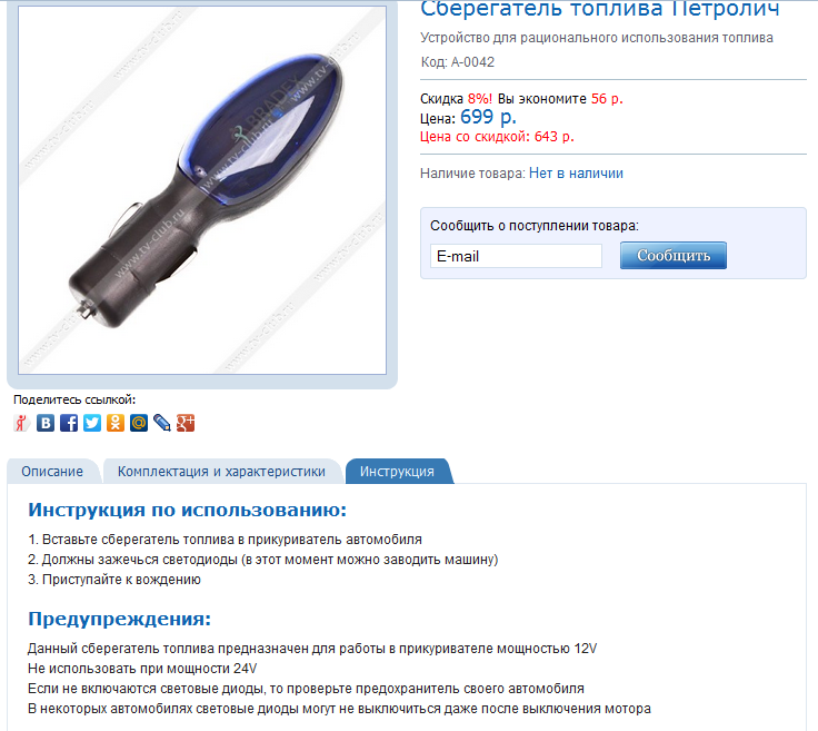 Цитата(Ex3me @ 8.3.2013, 12:20) ссылка доступна только зарегистрированным не так. не совсем корректно выразился. продавать заведомо бесполезный прибор мне совесть не позволяет. имел в виду, что для распространителей фактическая цена прибора около 3,500р. а никак не 6,000р. (доставку, кстати оплачивает либо сам магазин либо покупатель). мне предлагали работать на таких условиях, скриншот я выше прикрепил. и еще как может быть экономия топлива если эта штука не регулирует подачу? В таком случае эта штука должна не только улучшать смесь, но и осуществлять непосредственную подачу. Насос же качает как обычно - как и раньше) Я всё ещё жду скриншот, где можно купить этот девайс за 3500р??????? В скриншоте только 1200р за доставку, цену в 3500р у не вижу! Это давление меняется внутри прибора, эта вещь, как здесь уже писали, стара как мир, и так и называется этот процесс - кавитация!!! Не повышает его октановое число, но увеличивает сгораемость, за счёт как раз этого процесса, всё элементарно. Зайди на сайт, да читкани сам. -------------------- This is all about love, this is all about hate